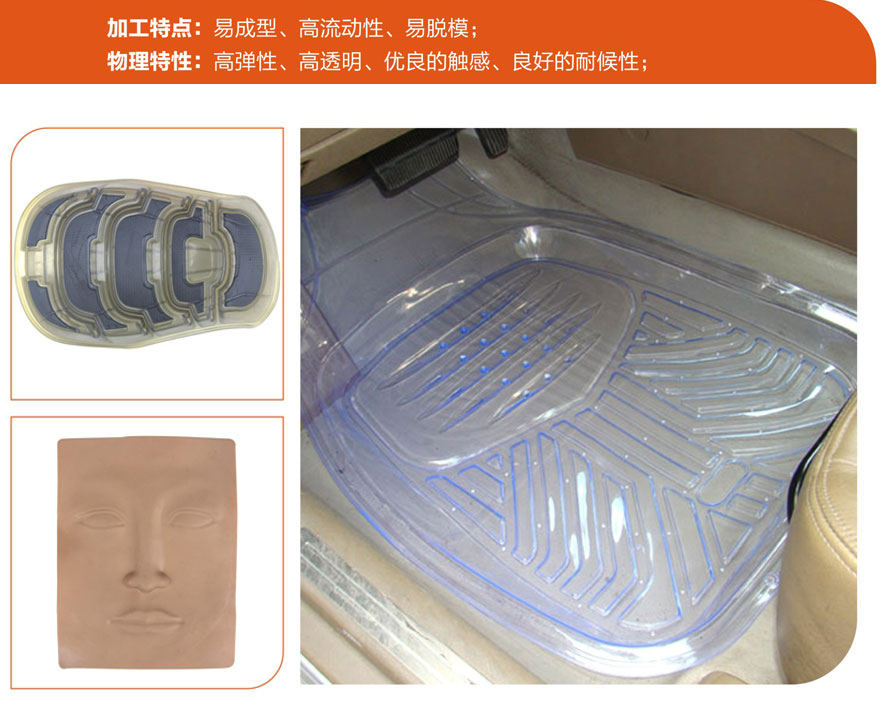 產(chǎn)品描述:加工特點:易成型、高流動性、易脫模 物理特性:高彈性、高透明、優(yōu)良的觸感、良好的耐候性 使用環(huán)境:室內(nèi)、室外產(chǎn)品均適用、標(biāo)準(zhǔn)型號耐溫:-30°C-80°C,特別型號極限值:-50°C~120°C 應(yīng)用:汽車部件、玩具、密封件、防水圈、防撞塊、成人用...